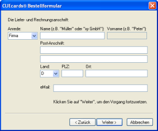 Tragen Sie dort die erforderlichen Angaben ein, und klicken Sie jeweils auf „Weiter“.