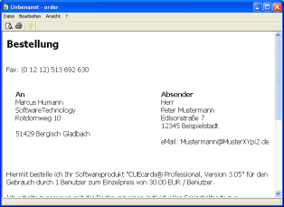 Das ausgefüllte Bestellformular wird auf dem Bildschirm dargestellt und kann